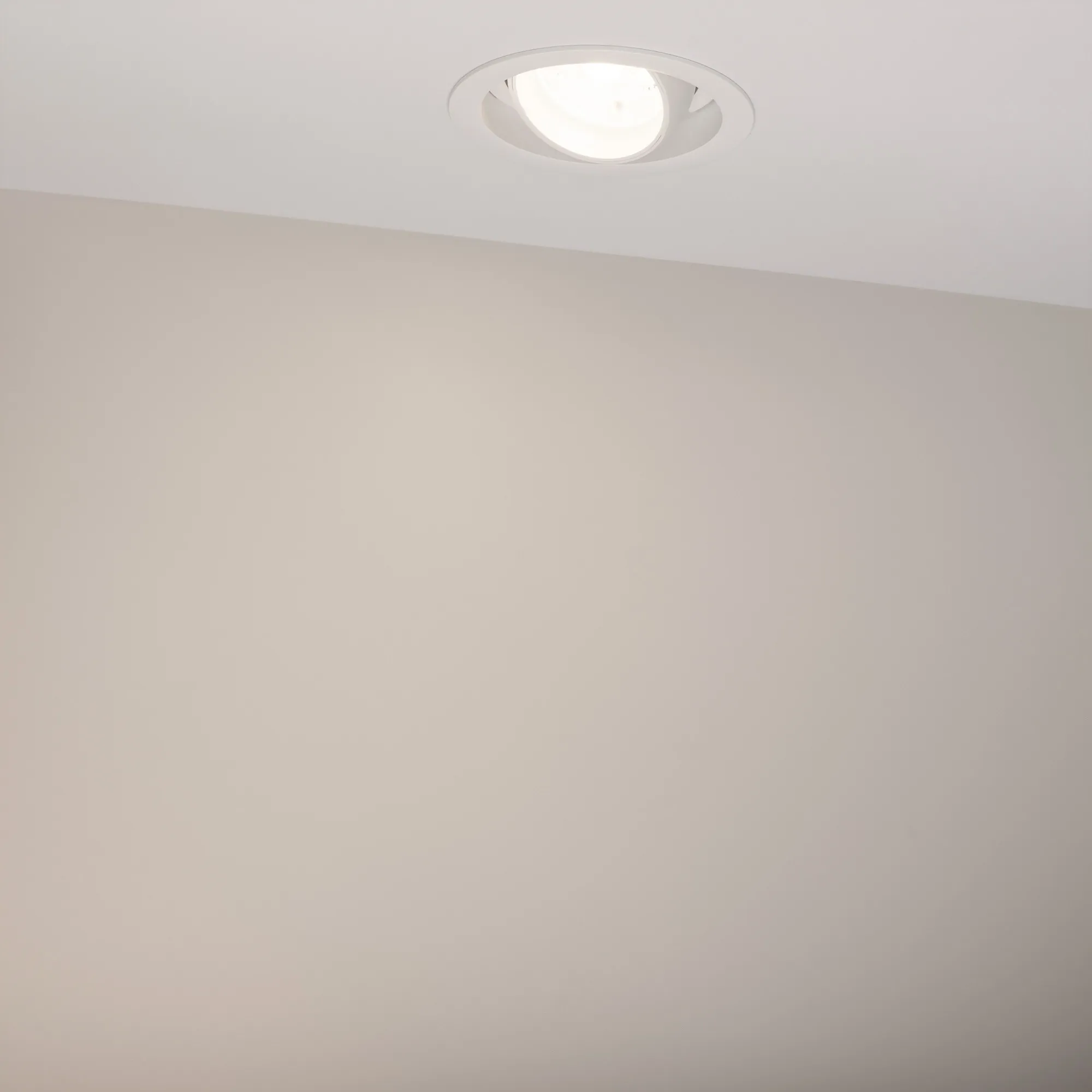 Встраиваемый карданный светильник. Мощность 30 Вт, св. поток 3104 лм, 102лм/Вт, дневной 4000 K, CRI>92, угол 17°, напряжение питания 230 В. Белый корпус из алюминия, белая вставка, степень защиты IP20. Размер: диаметр 135 мм, высота 125 мм. Монтаж встраиваемый, установочное отверстие: диаметр 120 мм. Драйвер 24-42 В, 750 мА, пульсация <2%.