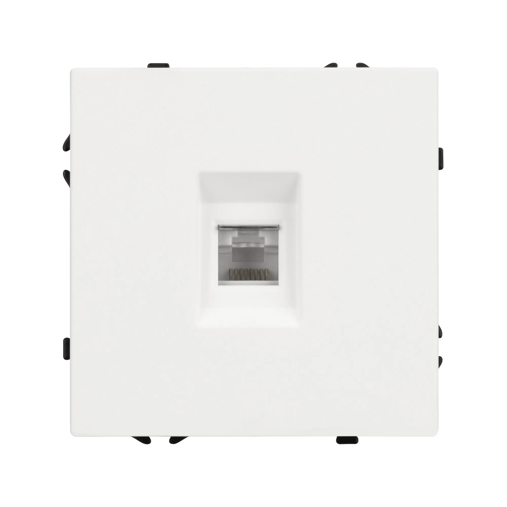 Механизм компьютерной розетки на 1 пост 6-й категории. Цвет - белый кварц, с Soft-Touch покрытием. Без фронтальной рамки. Уровень пылевлагозащиты IP20. Тип подключаемого разъема - RJ45. Розетка устанавливается в стандартный подрозетник круглого сечения диаметром 60мм.