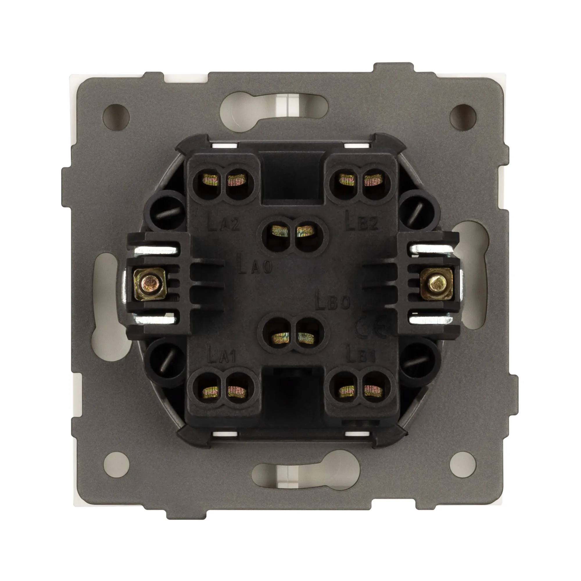 Механизм выключателя света клавишный на 1 пост 2 клавиши (проходной). Цвет - золотой. Без фронтальной рамки. Уровень пылевлагозащиты IP20. Выключатель устанавливается в стандартный подрозетник круглого сечения диаметром 60мм.