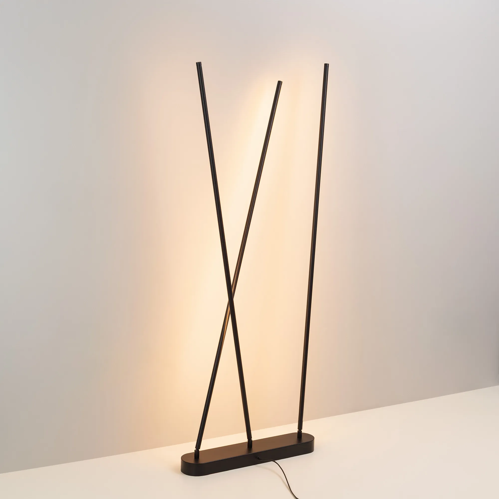 Напольный интерьерный светильник. Мощность 36 Вт, св. поток 1534 лм, 42 лм/Вт, с изменяемой цветовой температурой 2700K/3200K/4000K, CRI>94, угол 120°, напряжение питания 230 В. Черный корпус, степень защиты IP20. Размер: длина 500 мм, ширина 100 мм, высота 1290 мм. Диаметр светового элемента - Ø16 мм. Драйвер встроенный 33-40 В, 900 мА, пульсация <1%.