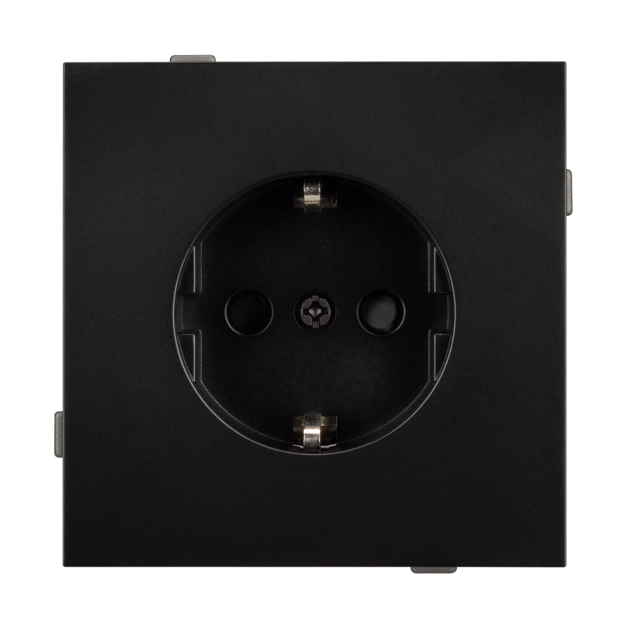 Механизм розетки с заземлением на 1 пост. Цвет - черный. Без фронтальной рамки. Уровень пылевлагозащиты IP20. Розетка устанавливается в стандартный подрозетник круглого сечения диаметром 60мм.