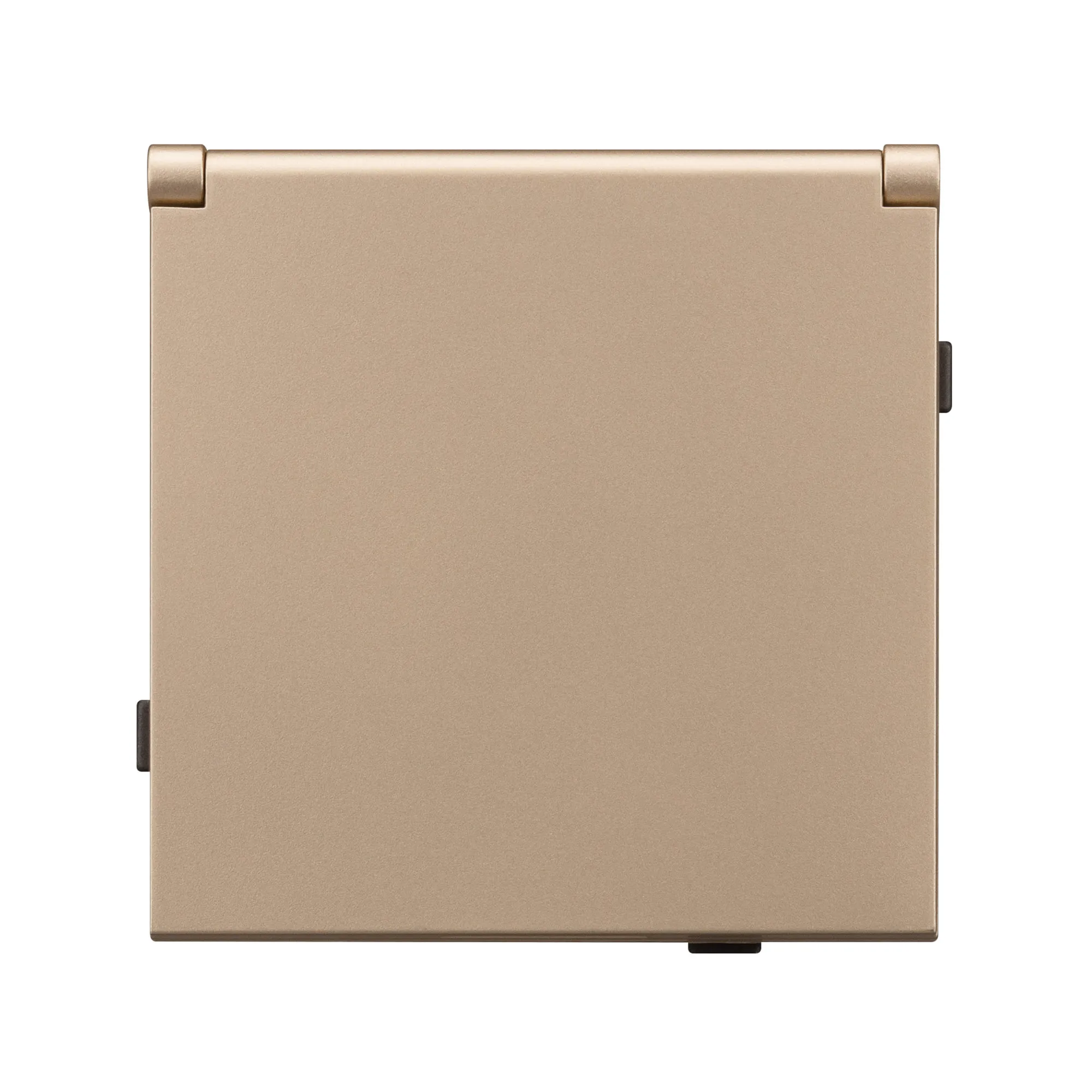 Механизм розетки с заземлением и влагозащитной крышкой на 1 пост. Цвет - песочный. Без фронтальной рамки. Уровень пылевлагозащиты IP44. Розетка устанавливается в стандартный подрозетник круглого сечения диаметром 60мм.