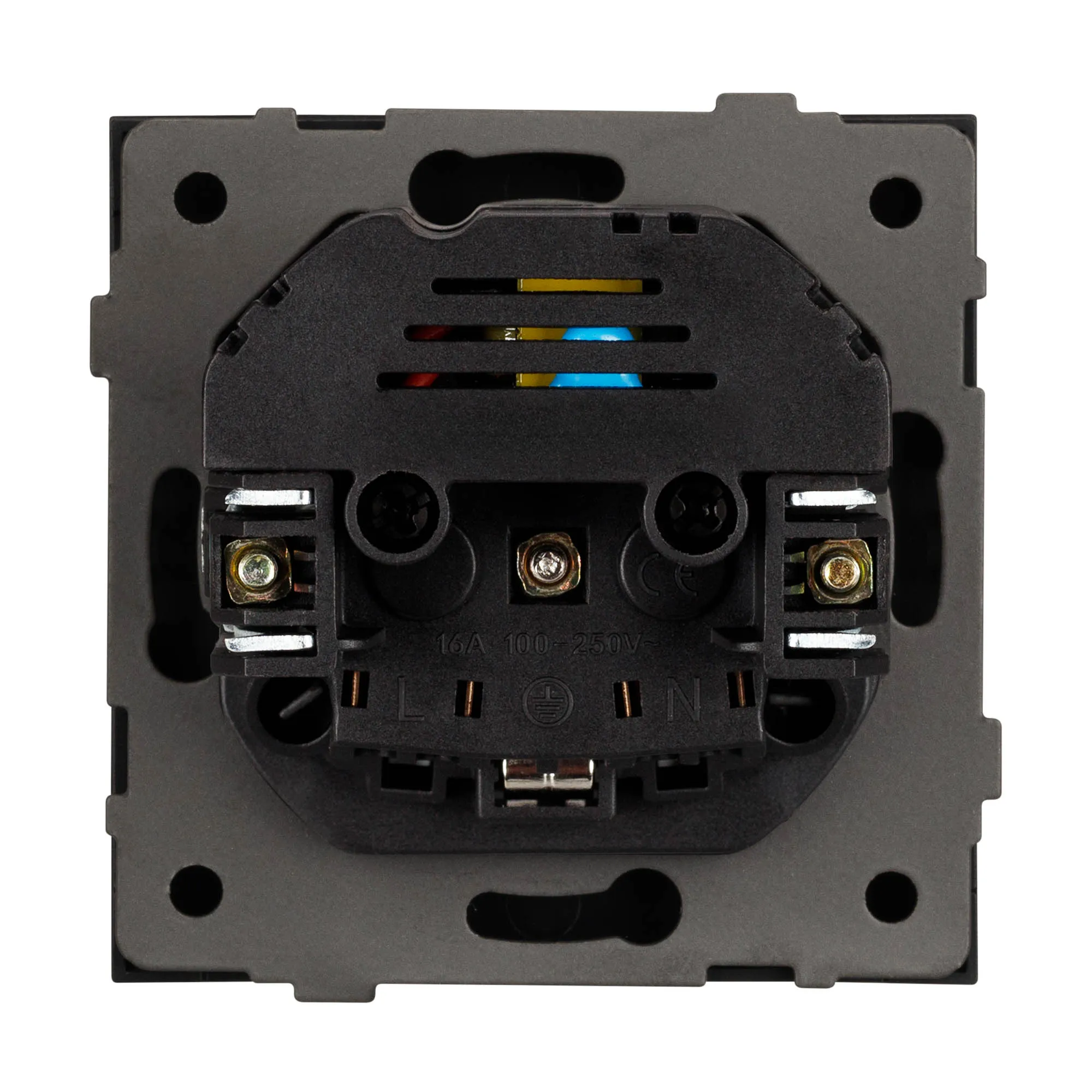Механизм розетки с заземлением на 1 пост и 2USB Type A порта. Цвет - матовый черный, с Soft-Touch покрытием. Без фронтальной рамки. Уровень пылевлагозащиты IP20. Розетка устанавливается в стандартный подрозетник круглого сечения диаметром 60мм.