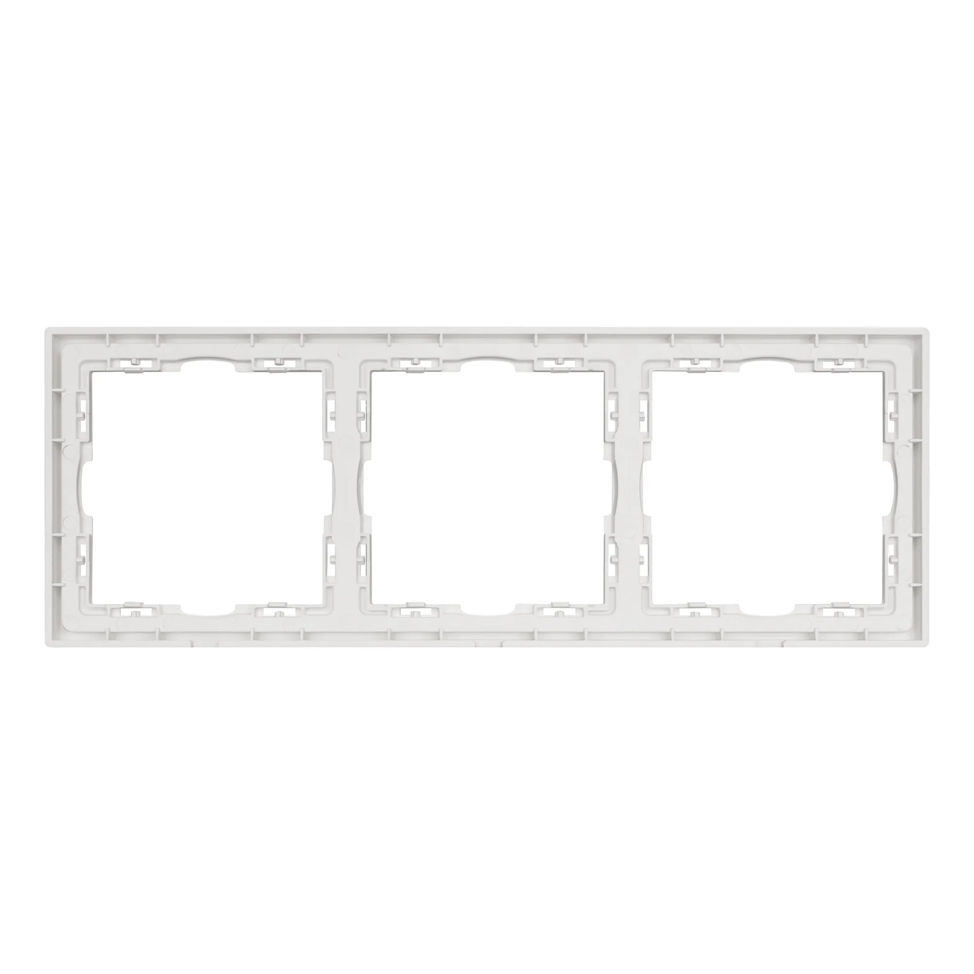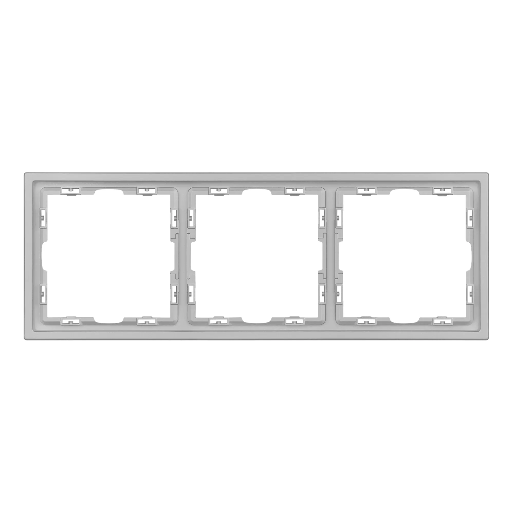 Рамка пластиковая на 3 поста, под встраиваемый механизм. Цвет - никель, с Soft-Touch поверхностью. Среднего уровня герметичности IP20. Ориентация монтажа горизонтальная.